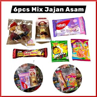 6pcs Jajan Mix (Asam Kering Mix 100g + obasan cake + nabati wafer + bengbeng + potato crisp + gula sour colorful rope)