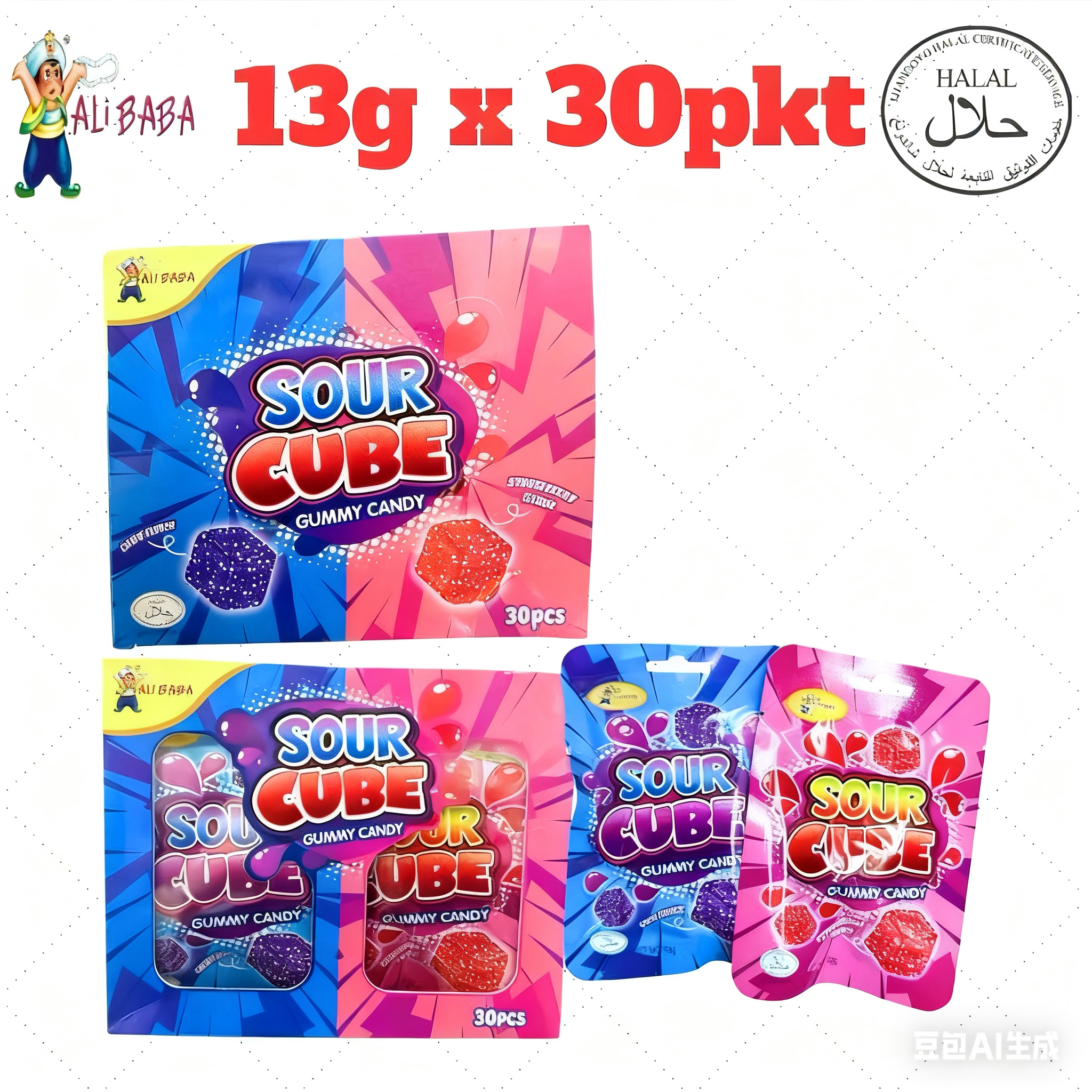 [ NEW ] 30pcs ALI (Grape+Strawberry) Sour Cube Gummy Candy HALAL (TTF)