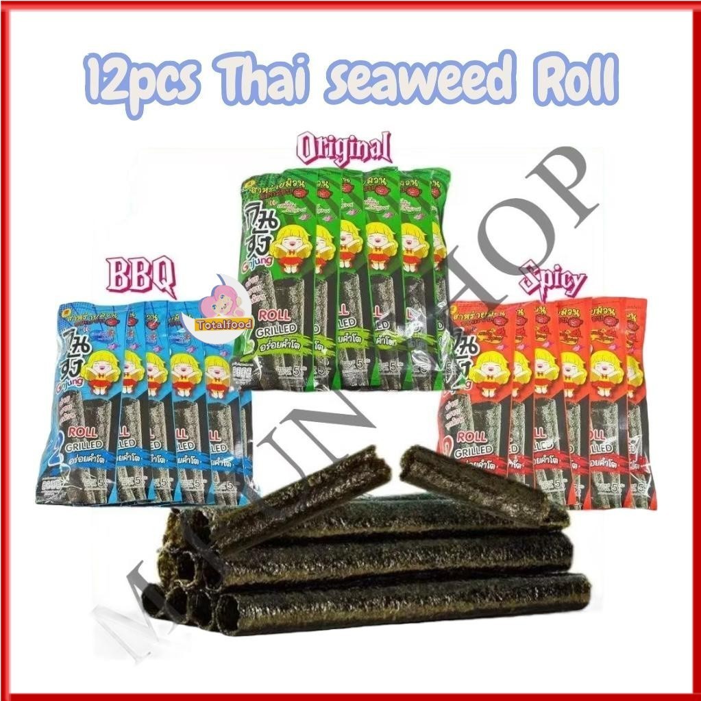 12 Pek Snek Rumpai Laut Gulung / Grilled Seaweed Brand Thailand (Original/Pedas/BBQ) | Halal | 1 Pek = 2 Roll (TTF)