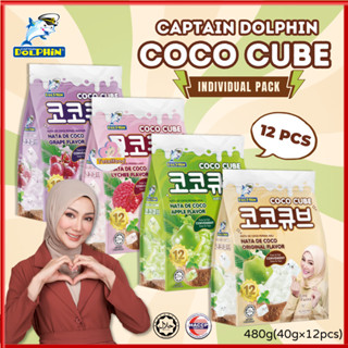 12 Sticks Coco Cube Captain Dolphin Nata De Cube Coco Minuman Topping Lychee Jely Kelapa Snek 椰果零食