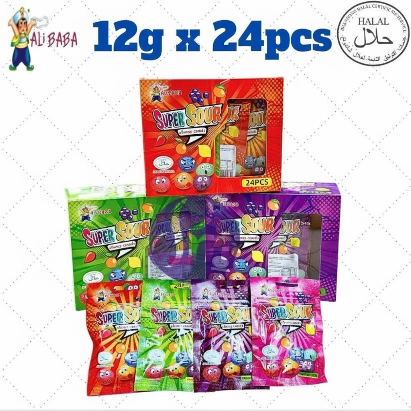 24pcs x 12g Ali Super Sour Chewy Candy fruits flavor