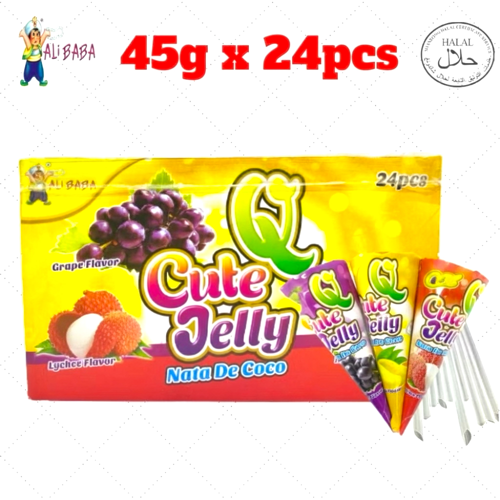 24pcs x 45g Alibaba Q Cute Jelly with nata de coco (Grape / Lychee / Mango))