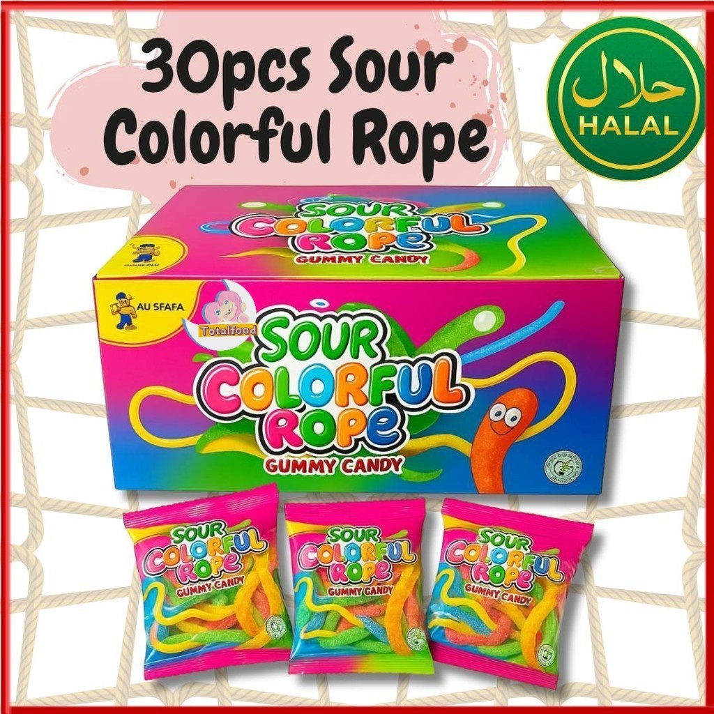 30pcs ALI SOUR COLOURFUL ROPE Gummy masam gula halal (TTF)