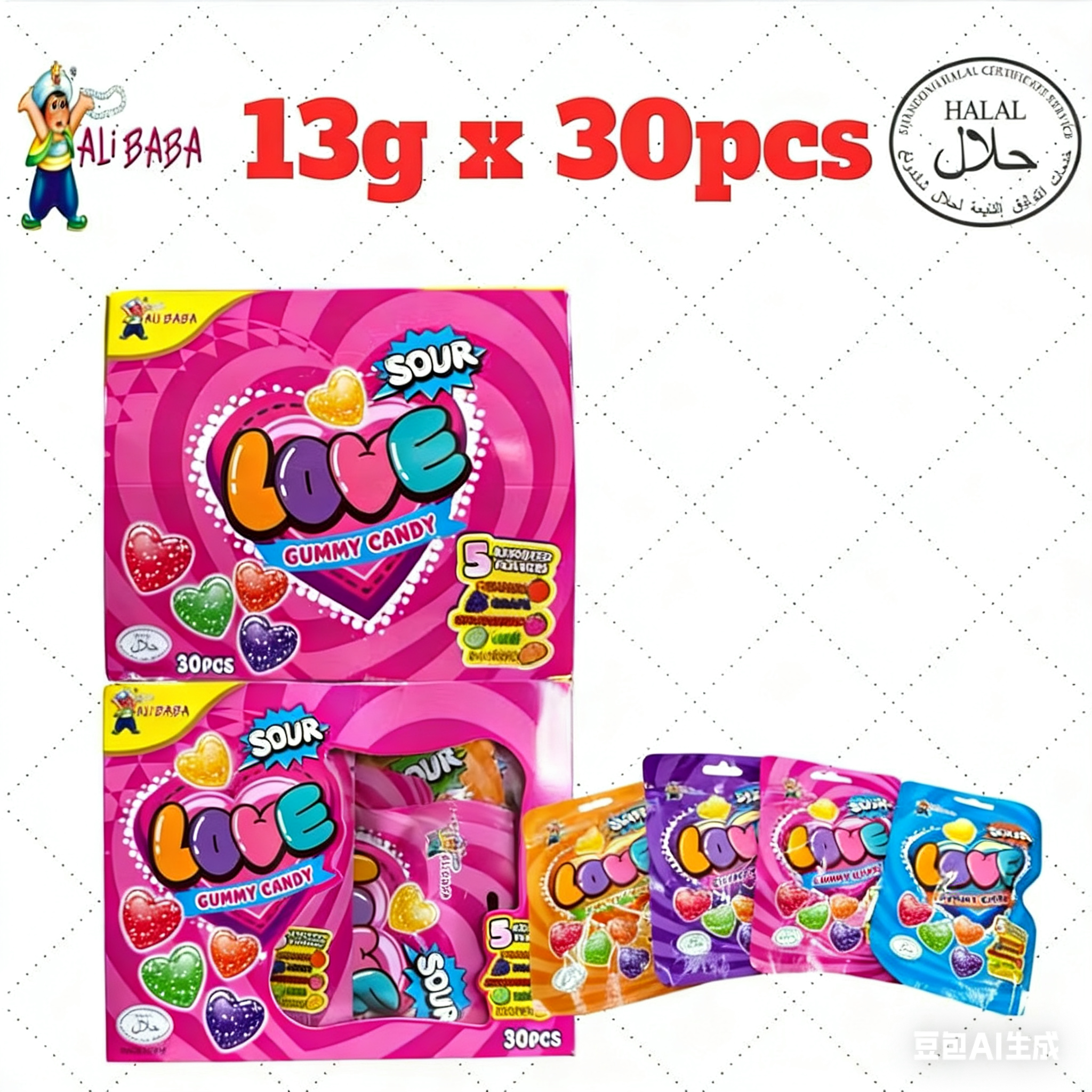 30pcs ALI Sour LOVE Gummy Candy HALAL fruits flavour