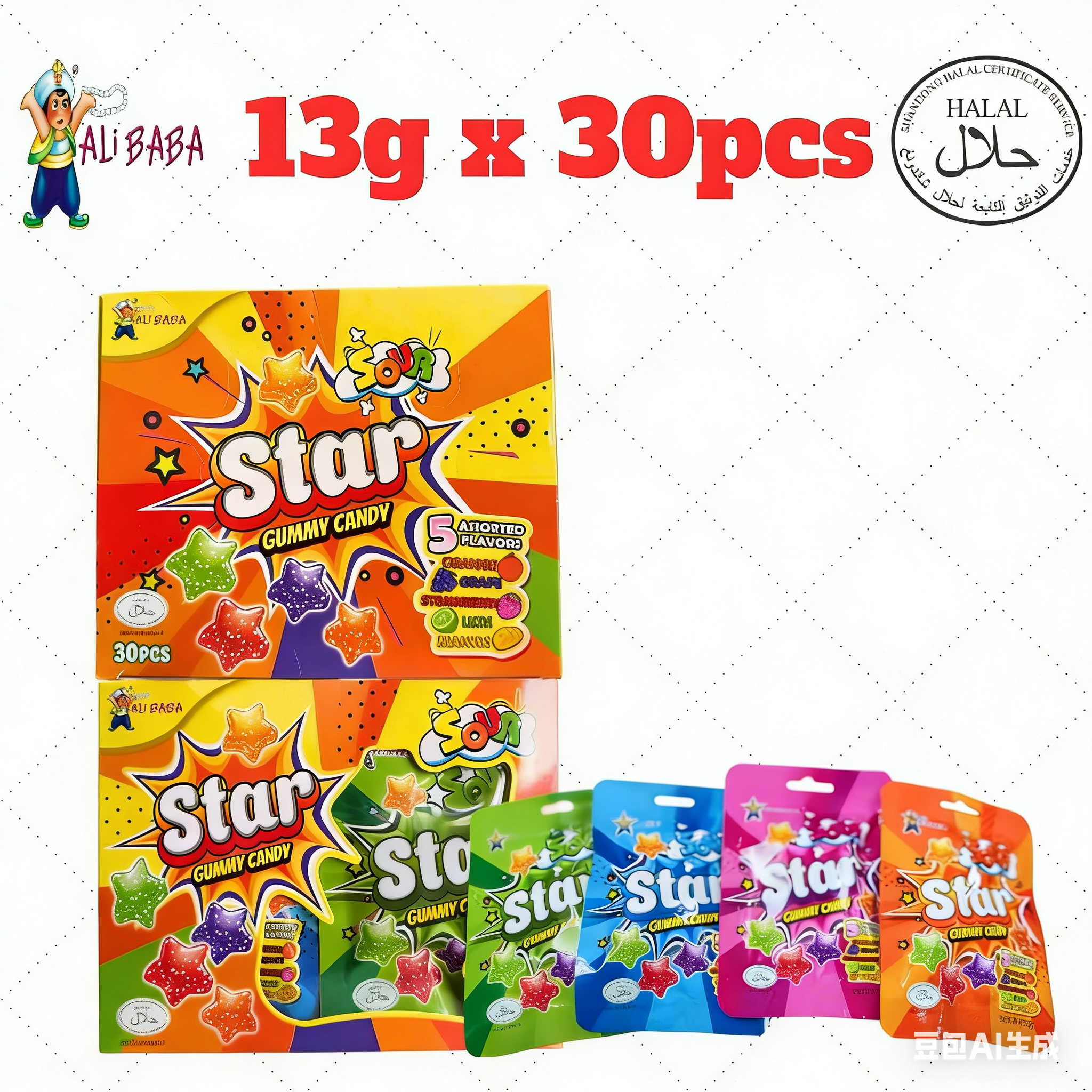 30pcs ALI Sour Star Gummy Candy HALAL fruits flavour