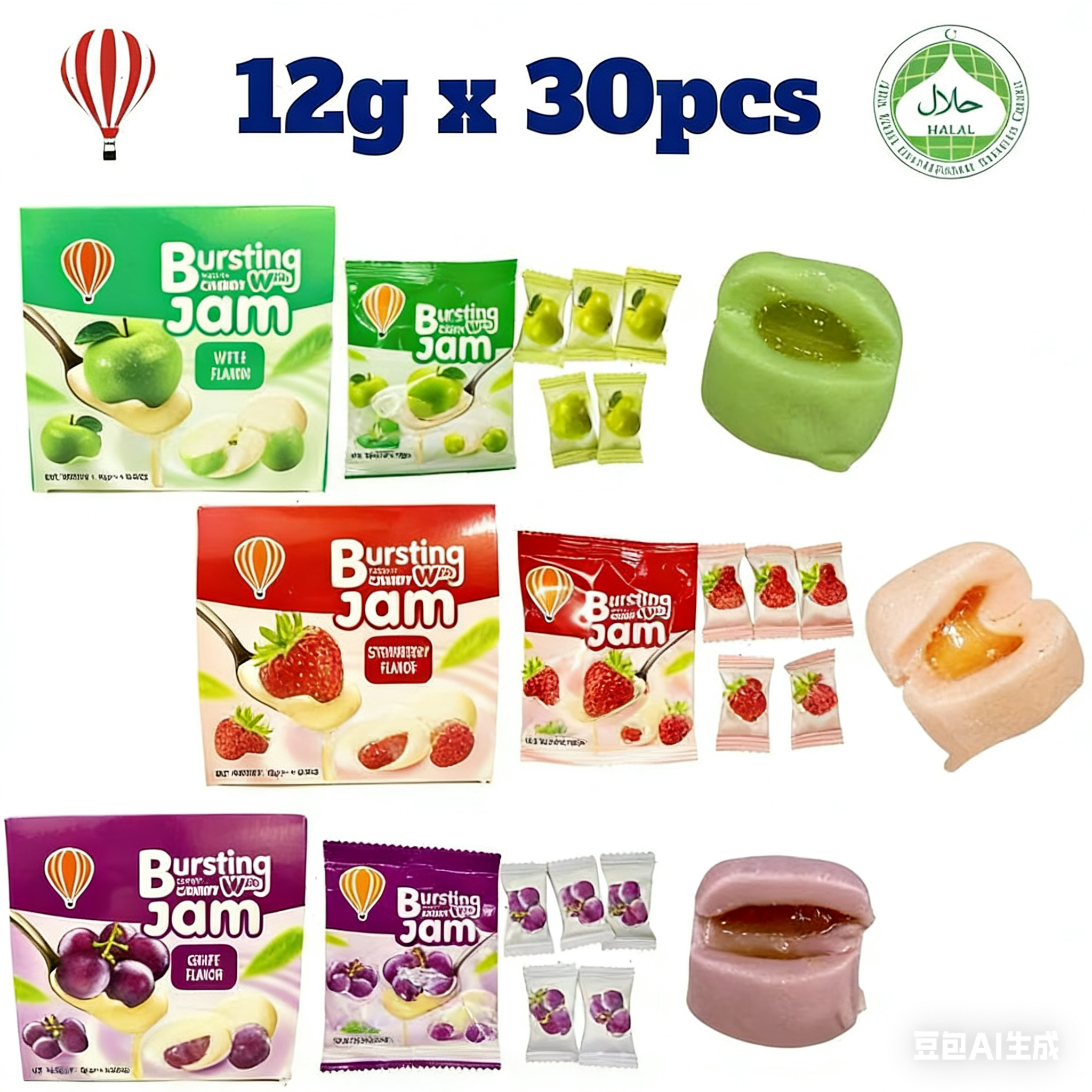 30pcs KHY Balloon brand Bursting Chewy Candy With fruit jam [Apple / Strawberry/Grape / Mix]