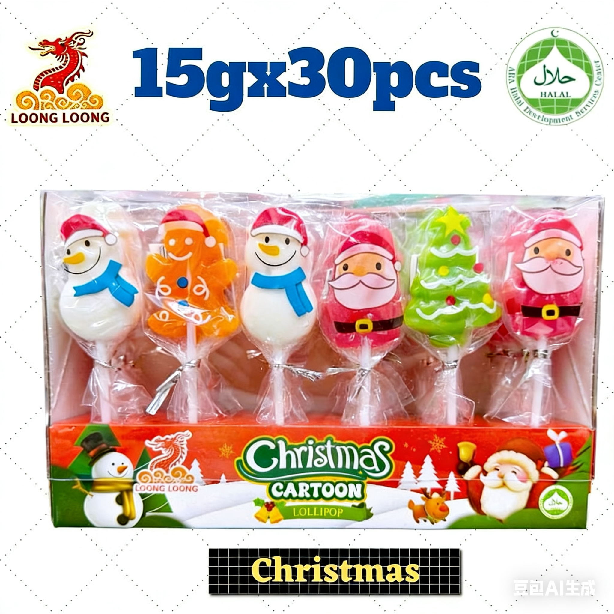 30pcs Loong Loong Merry Christmas cartoon Lollipop hard candy