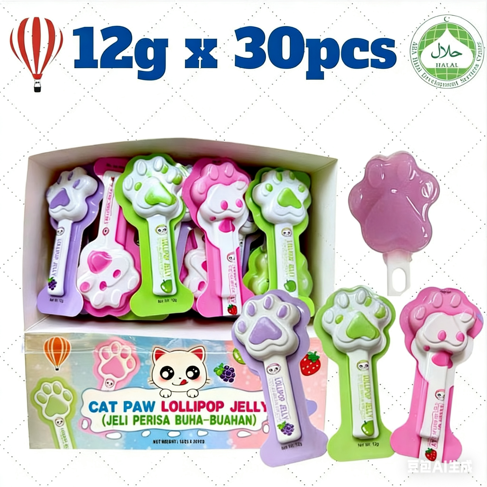 30pcs x 12g KHY Cat Paw Lollipop Jelly Fruits Flavour (halal)