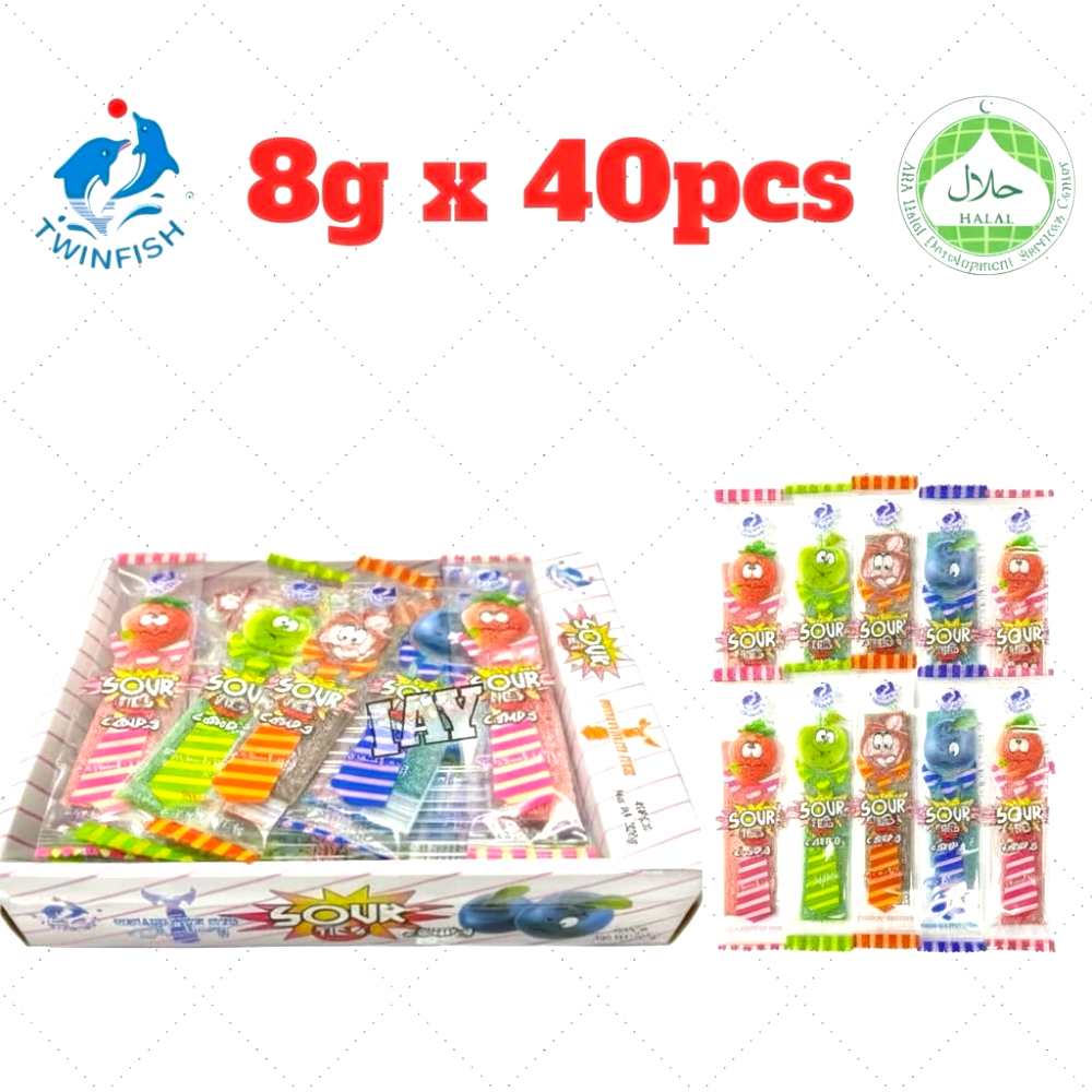 40pcs Twinfish Sour Ties Gummy Candy Fruits Flavour