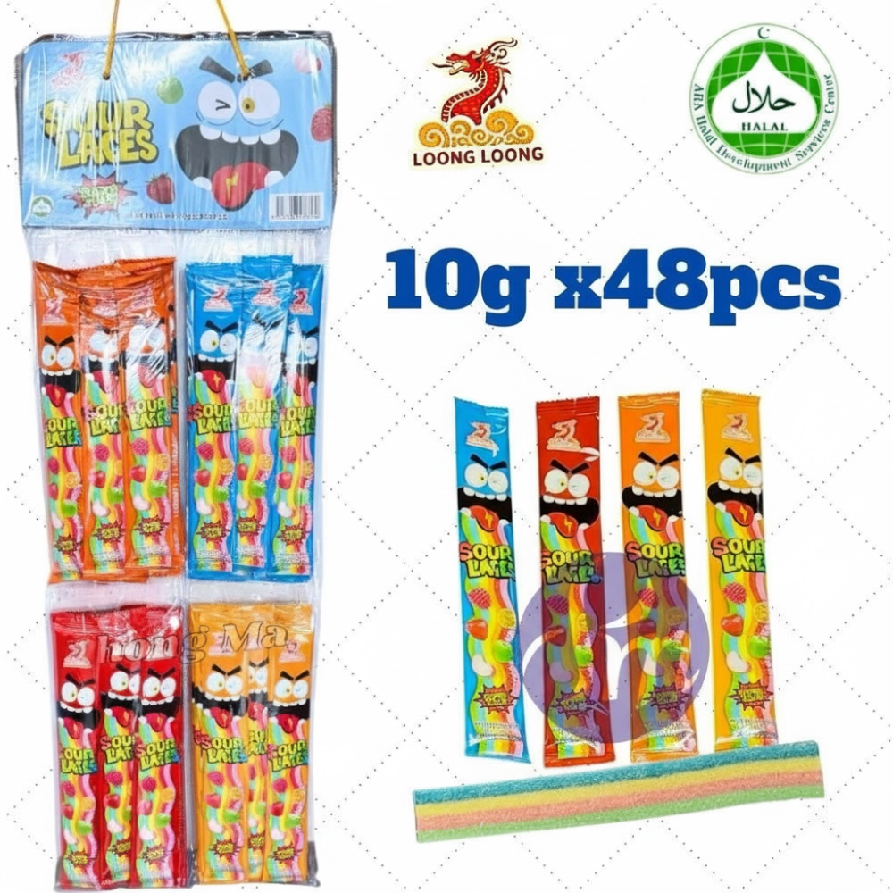 48pcs KHY Sour laces Candy / masam manis / 4flavour macam sour belt gummy (halal)