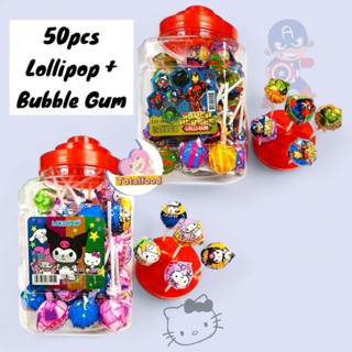 50pcs x 23g KHY Lolli-Gum Lollipop candy with Bubble Gum Hard candy Chewing Gum [Super Hero / Cute]