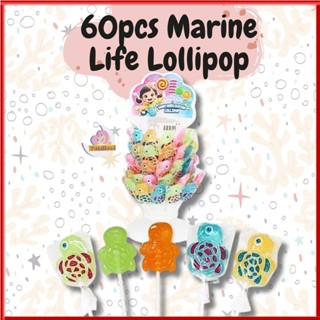 60pcs Leanseng Marine Life lollipop cute animal turtle fruits flavour (halal)