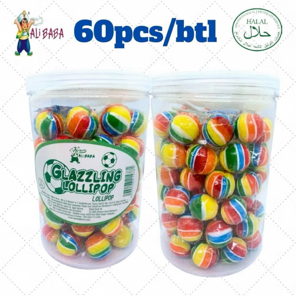 Ali Glazzing lollipop Football rainbow candy gula 60pcs