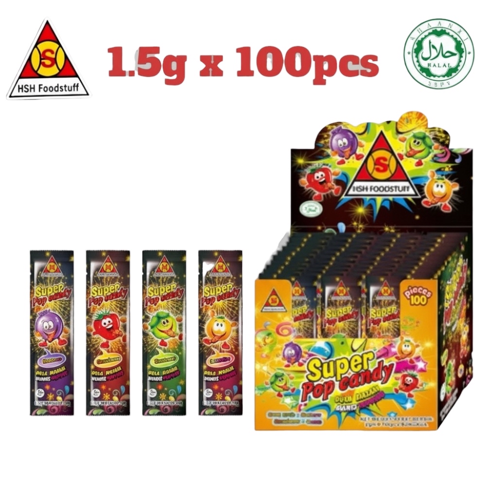 Super Pop Candy gula masam manis Popping candy 100pcs [Apple Blueberry Strawberry Orange]